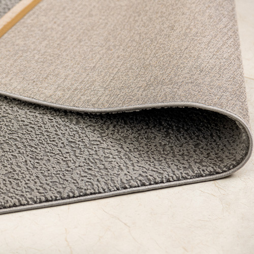 Tapete neutro com borda rebatida, que não deixa que as pontas fiquem